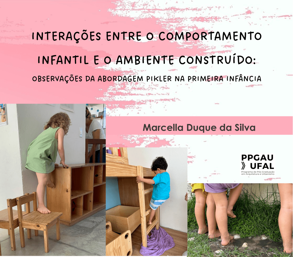 A pesquisa desenvolvida por Marcella Duque da Silva, defendida em 2024, teve como objetivo principal compreender a relação entre o ambiente construído e o desenvolvimento motor da criança na fase da primeira infância. Estudou-se as necessidades da criança na primeira infância e a importância de o ambiente construído estar adequado à escala antropométrica, oferecendo funcionalidade no uso autônomo do ambiente. Isso possibilitou, por meio da organização e do mobiliário, à criança experiências de motricidade livre que contribuem para seu desenvolvimento.